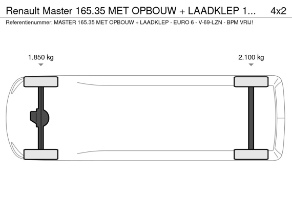 KENTEKEN V-69-LZN / CHASSISNUMMER: VF1MB000470186145LAADBAK MATEN INWENDIG:LENGTE 4.10 M. x BREEDTE 2.13 M. x HOOGTE 2.20 M.D'HOLLANDIA LAADKLEP 1000 KG. + ROLSTOPS - INSTEEK 2.17 METER - 1x BINDRAIL